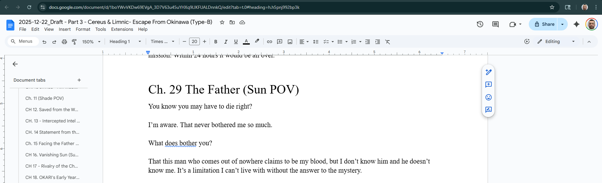 It's help a lot. You're much better technically than I am, so I learned a great deal about sentence structure, my strengths, and weaknesses as a writer. I still can't figure out how to punctuate dialogue, or what to capitalize vs leave lower case in it, but that's just one of those areas I try and learn, but never registers! So it was an edit and an education.