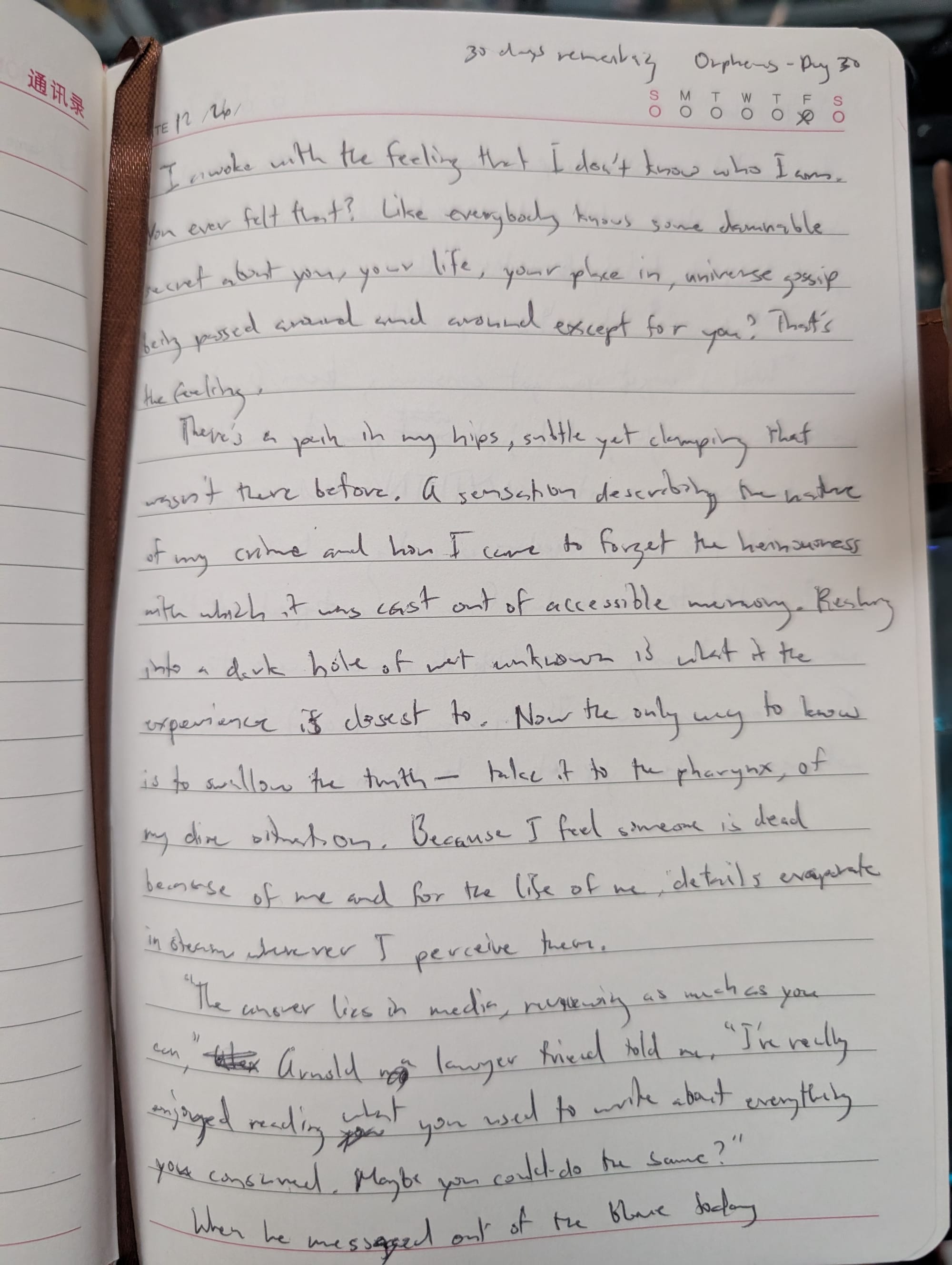 Because I feel someone is dead because of me and for the life of me, details evaporate in streams wherever I perceive them.