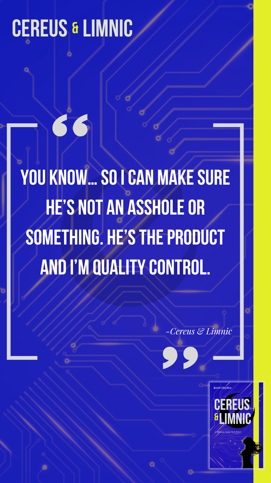 “You know…so I can make sure he’s not an asshole or something. He’s the product and I’m quality control. I have to make sure he’s not defective, y’know. If he is, then we’ll return him.”