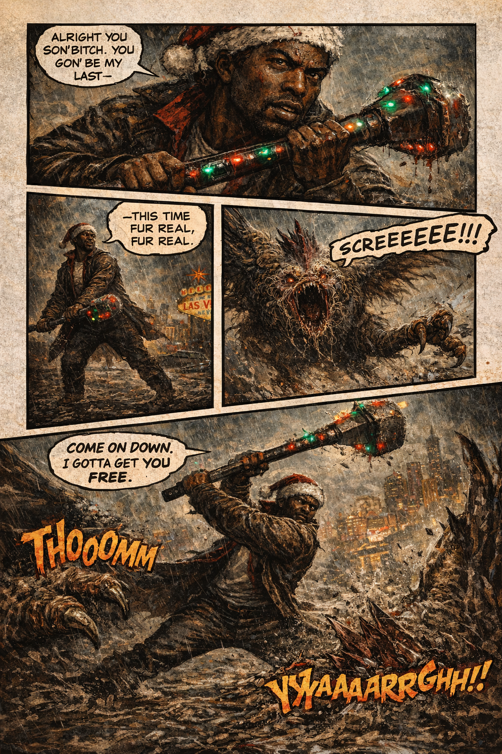 The "red-suited man" wouldn't be coming to thank him. There were no cookies, no milk, no gratitude in this line of work. Just the quiet satisfaction of a predator removed from a valley that already had enough problems. Just more work.