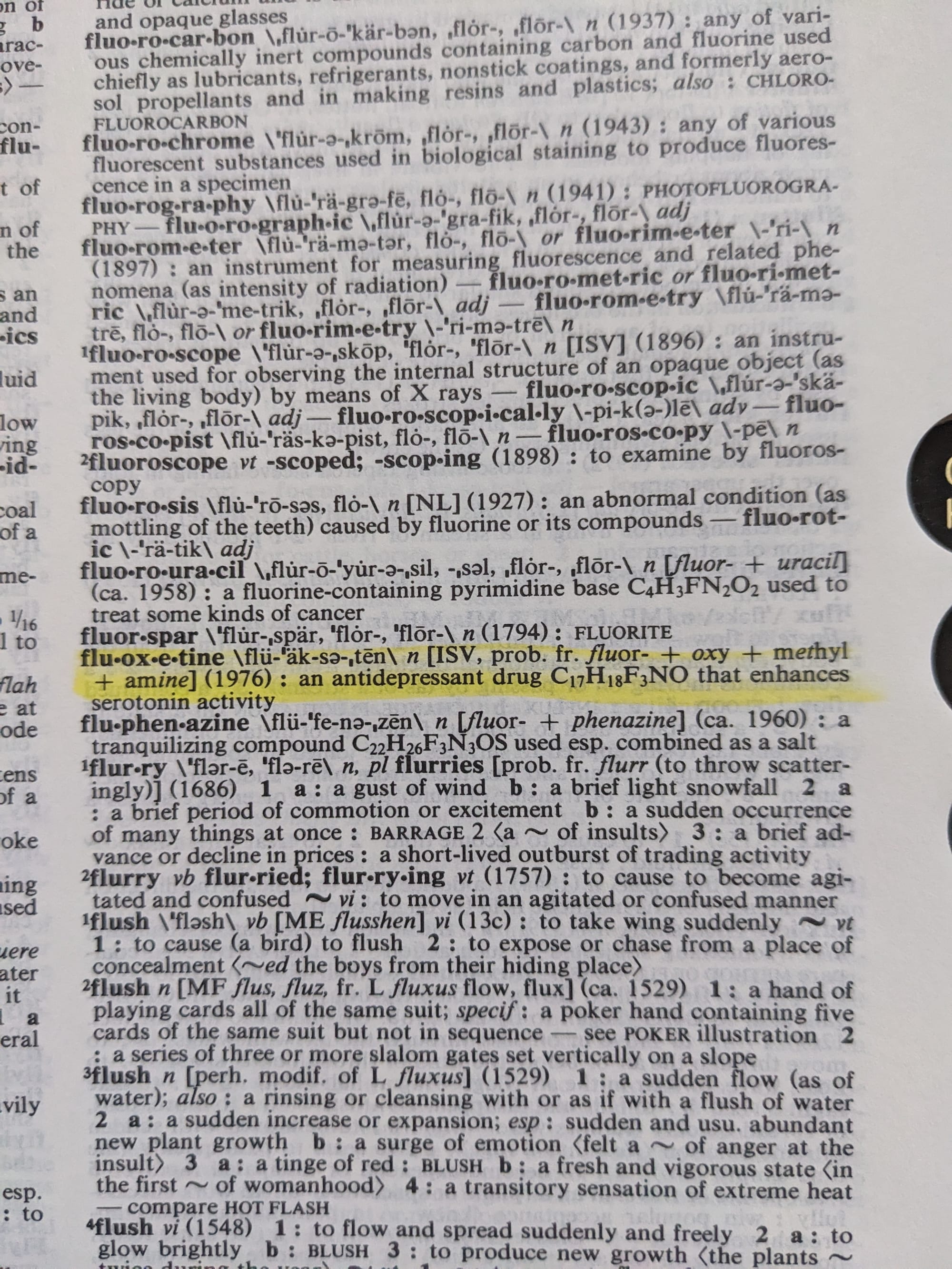"fluoxetine" - an antidepressant drug C17H18F3NO that enhances serotonin activity