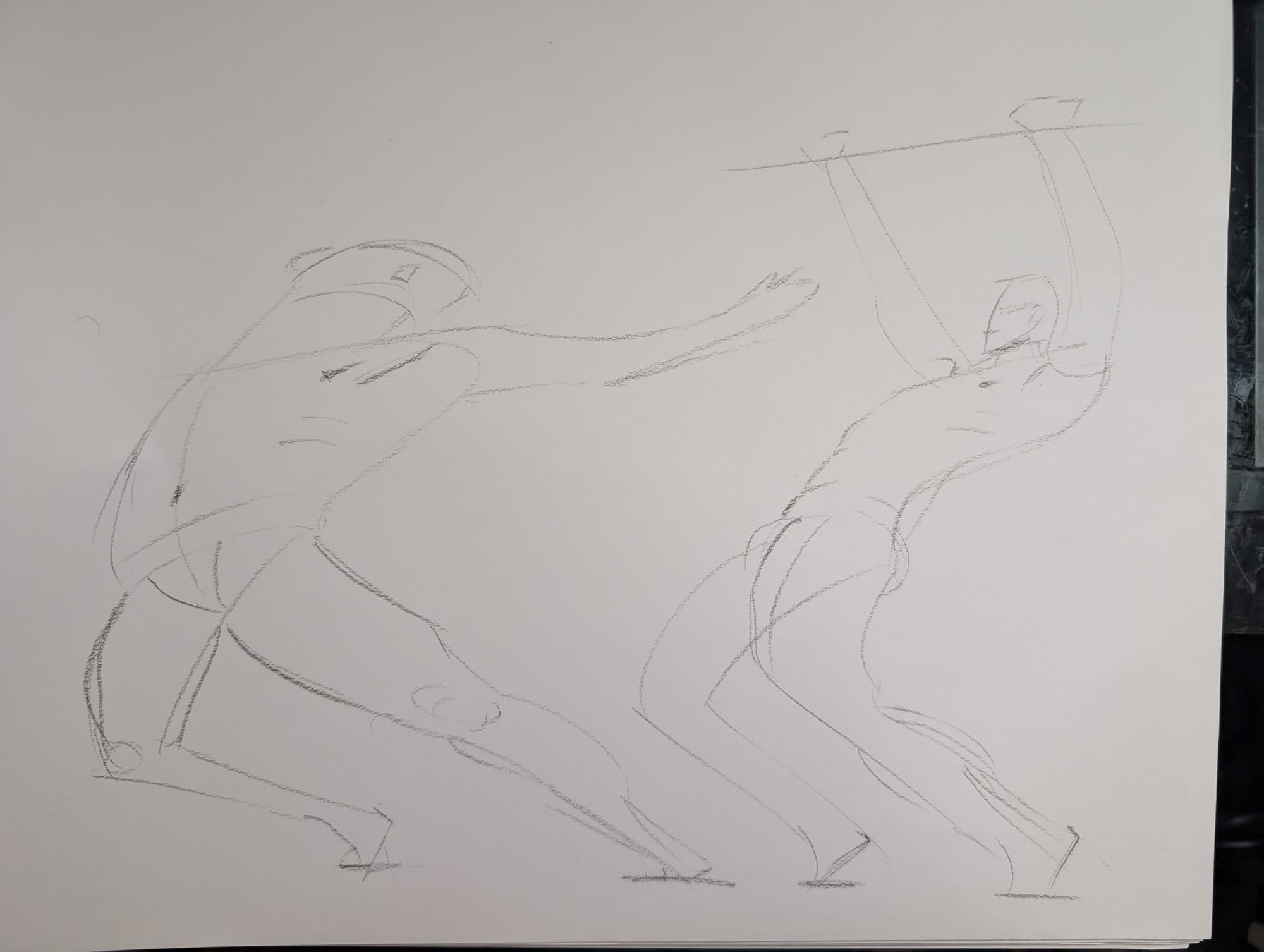 The line lay‑in was rough and wasn't looking very promising, but careful charcoal edges pulled the form together in the end.