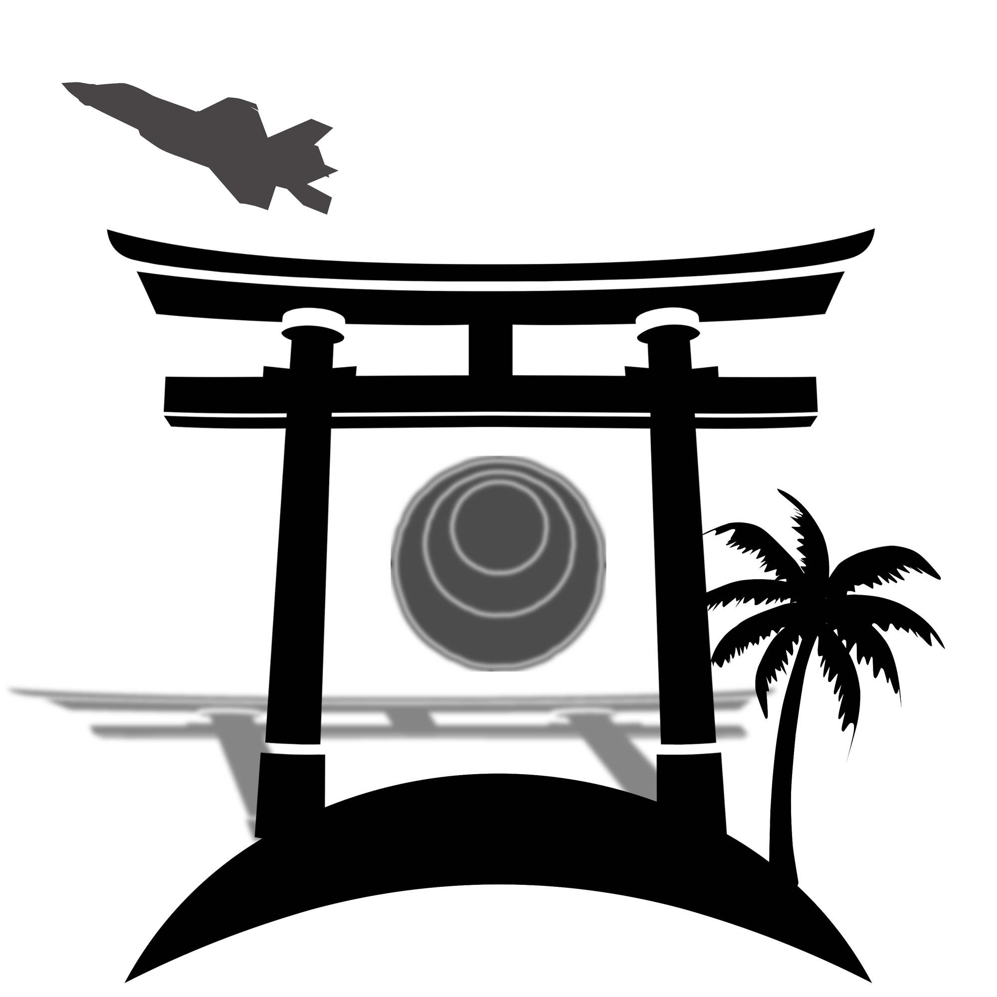 If you're curious, the elements for this one are: Japanese torii gate (main symbol of the novel), sits on an arc representing the island with a palm tree for the many beaches there. I added the shadow for depth.