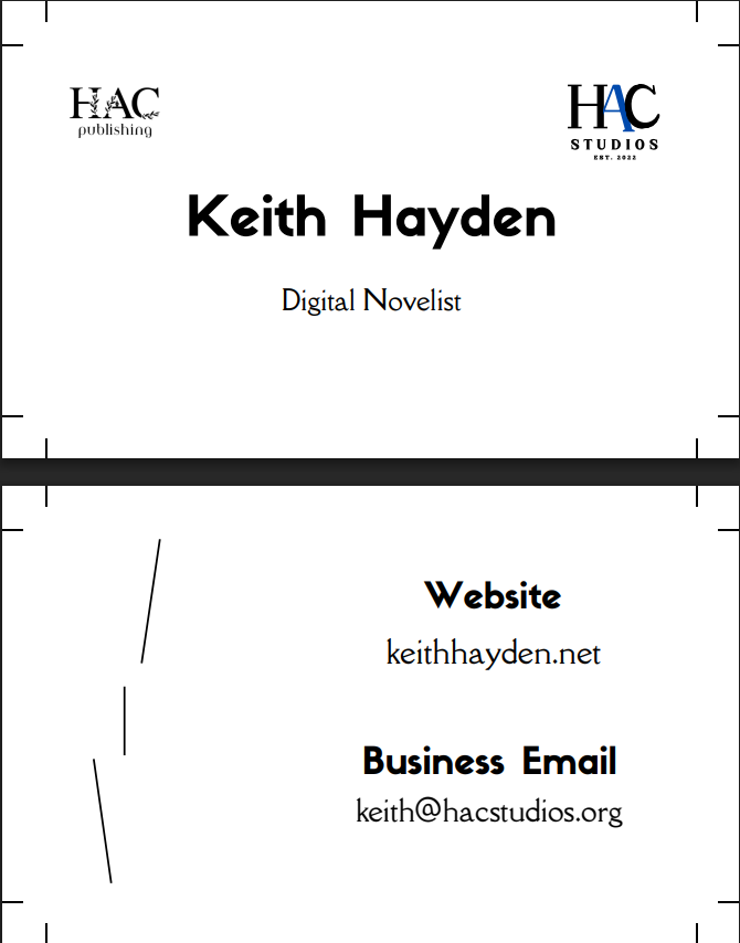 That's where I'm at with HAC Studios.